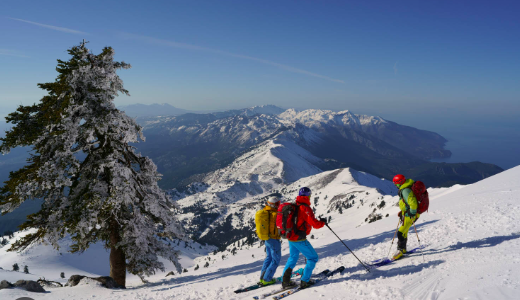 Du ski exotique avec vue sur la mer. De l’exploration au mieux des conditions. Des massifs du Peloponèse avec sources d’eau chaudes à la mode Nippone, au Mont Olympe et ses couloirs en passant par les nombreux spots du Nord Est ou la traversée de la Crête, la Grèce et sa douceur de vivre se conjugue aussi en hiver. Les Crêtois on même inventé une course de ski alpinisme, la « Pierra Crêta » ! Lors de la première, ils ont envoyé un courrier aux organisateur de la Pierra Menta pour leur demander de changer la date de cette dernière qui faisait doublon avec l’évènement Grec. Comme le deuxième degré n’était pas arrivé jusqu’au tréfond de la Savoie, la réponse s’en est ressentie…